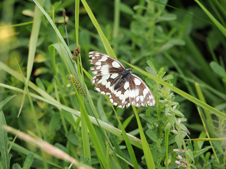 I spot two of them, fluttering around among the long grasses and flowers near the path. To be honest, they’re maybe a little tatty and faded to brown and white, rather than the strikingly contrasting black and white marbled appearance of those in pristine condition, but I’m really not bothered: it’s another wonderful wildlife sighting at this little nature oasis.