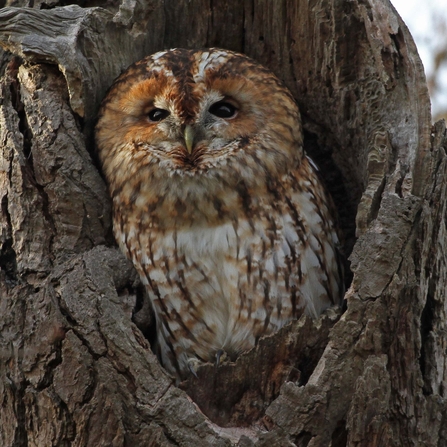 The tawny owl has a rich repertoire of calls. Listen out for the short 'ke-wik' contact call and the quavering 'hoo, hu-hooo' advertising call.