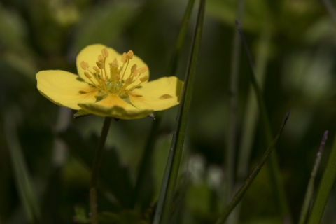 Tormentil can be found growing on acid grassland, heathland and moorland, but even pops up alongside roads. It bears yellow, buttercup-like flowers, but with only four petals (buttercups have five).